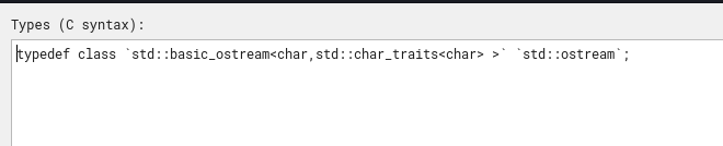 For instance, standard classes like a vector<char> or basic_string<char> are defined here, with its corresponding offsets.