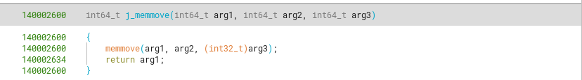 Other cases are functions that just call a known C function like memmove or memcmp, which we can rename to j_{functionName}.