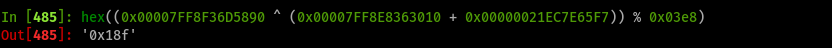 The obtained value is 0x000000000000018F, using sumBytes as 0x21EC7E65F7 (don’t worry, I’ll address this later).