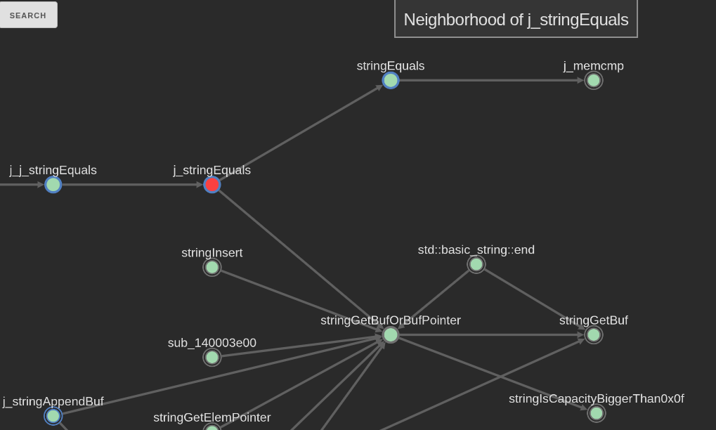 We called this function j_j_stringEquals because it does 2 calls before eventually reaching the stringEquals, which performs a memcmp on the 2 buffers of the strings passed as arguments. If said strings aren’t even the same size, it will fail prior to comparation.
