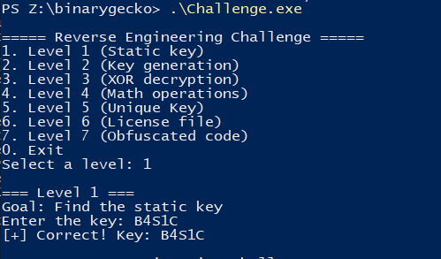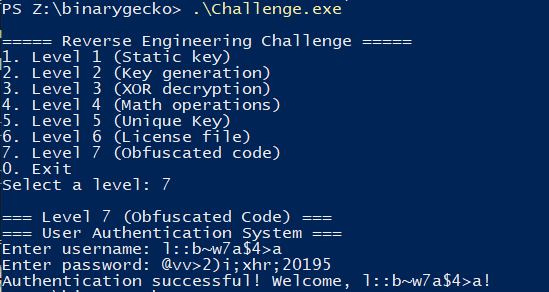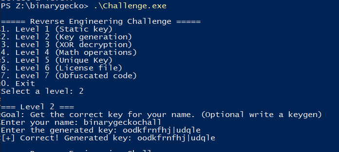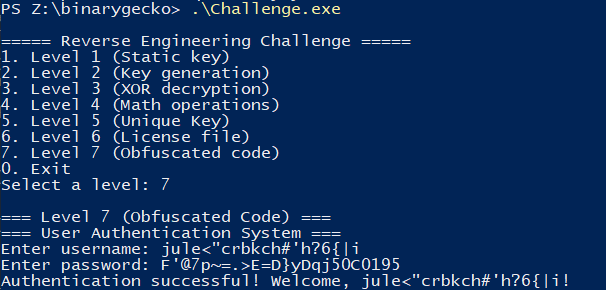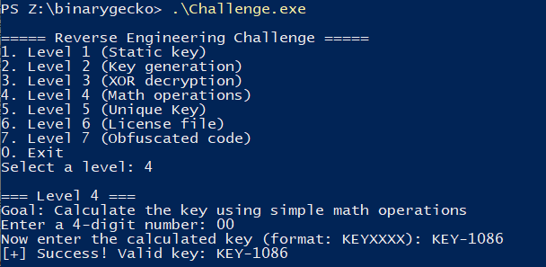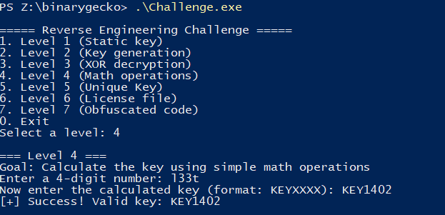 This post corresponds to the verbatim (non-modified) report I used to apply to Binary Gecko’s Academy. Binary Gecko is a leading company in Vulnerability Research located in Germany that opened an academy program this year in Argentina with the noble goal of teaching the fundamentals of VR and preparing the next generation of Vulnerability Researchers in the region. This challenge had a duration of 7 days (ending on November 1st), and it consisted of 7 levels with increasing difficulty in RE on Windows x86_64. The end goal was to select the best alumni for the limited spots.
