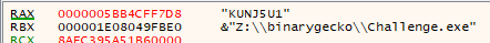 Note that we can still bypass this easily inside a debugger, either by modifying the data used for cmp before branching into the wrong block of code, or by modifying the RIP register after taking that branch to switch execution to our branch.