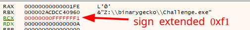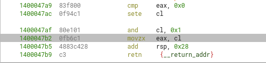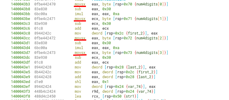 Another thing to notice, is that each char in the 4-byte sequence of our input will be sign-extended (through movsx) to a 32-bit signed integer.