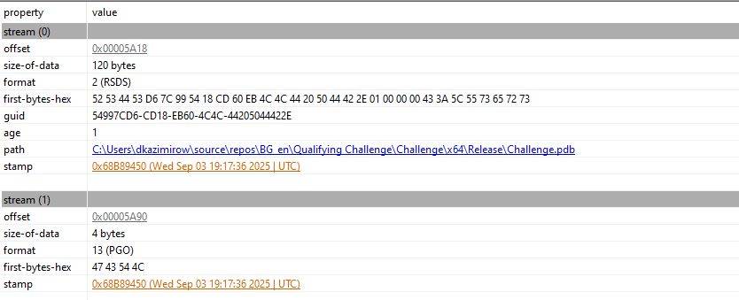 Parsing the PE headers, one can see that this program was compiled this year (on September), along with the path where it was compiled in (through the .pdb path). Hi dkazimirow!